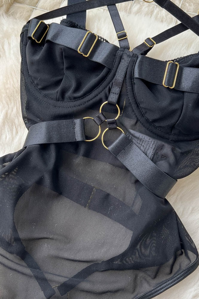 Embrace your boldest self in this daring lace mesh bodysuit, where sheer sensuality meets confident style. Delicate lace patches create an alluring contrast against breathable mesh, while adjustable chest straps offer customizable support and a flattering silhouette. Perfect for those who dare to make a statement—whether layered under sheer pieces or worn as a standalone statement piece. Crafted for the modern rebel who refuses to blend in.