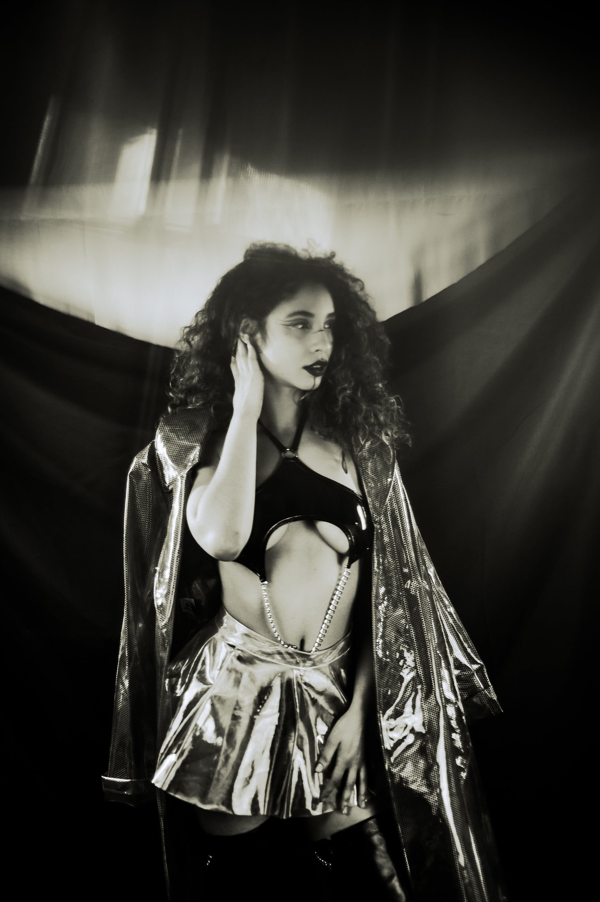 Erobern Sie die Tanzfläche mit diesem auffälligen Rave Minirock. Der ausgestellte Schnitt betont Ihre Taille und sorgt für eine schmeichelhafte Passform, während das glänzende PVC-Material Ihren Look zum Strahlen bringt. Der Reißverschluss auf der Rückseite verleiht dem Rock eine edgy Note und macht ihn perfekt für Clubnächte und mutige Outfits.